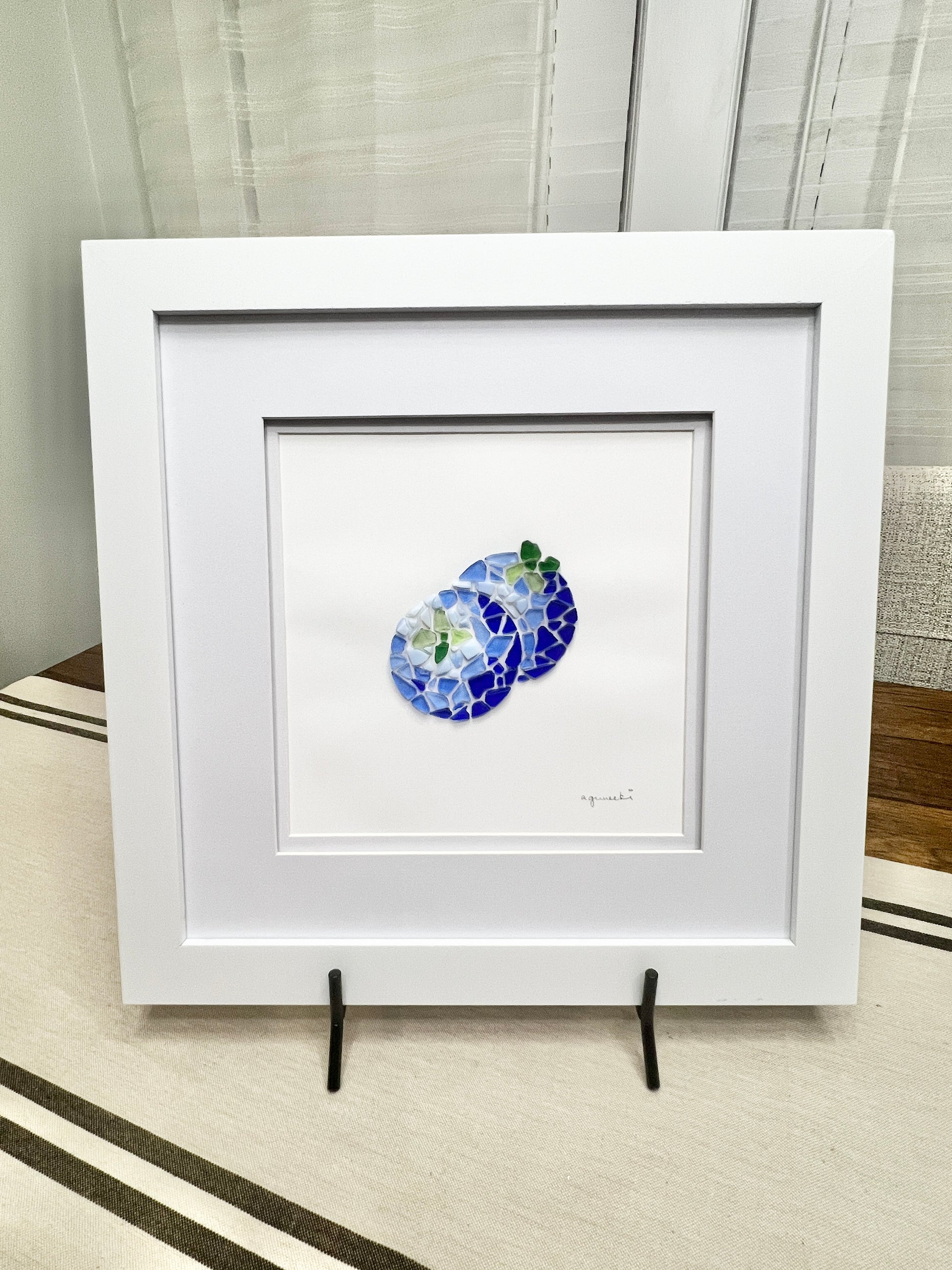 Original Mosaic Glass Art framed in a white frame with a white matte. Comes with hanging wire.