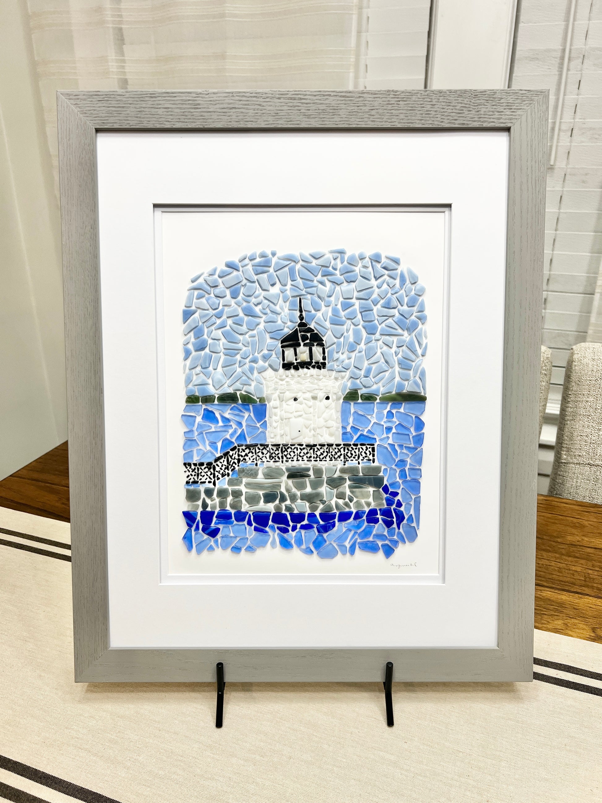 Original Mosaic Glass Art framed in a white frame with a white matte. Comes with hanging wire.