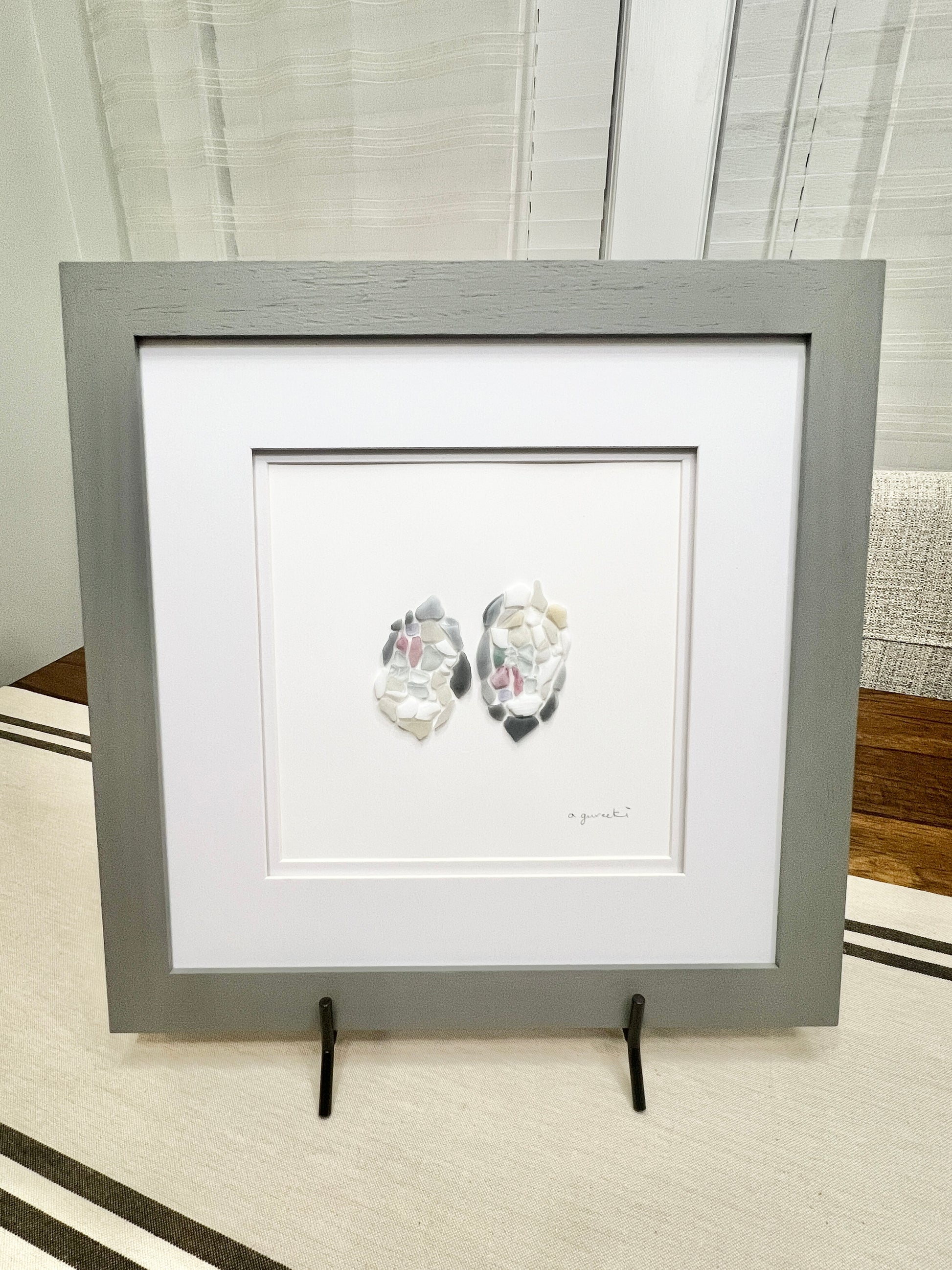 Original Mosaic Glass Art framed in a Medium Gray frame with a white matte. Comes with hanging wire.