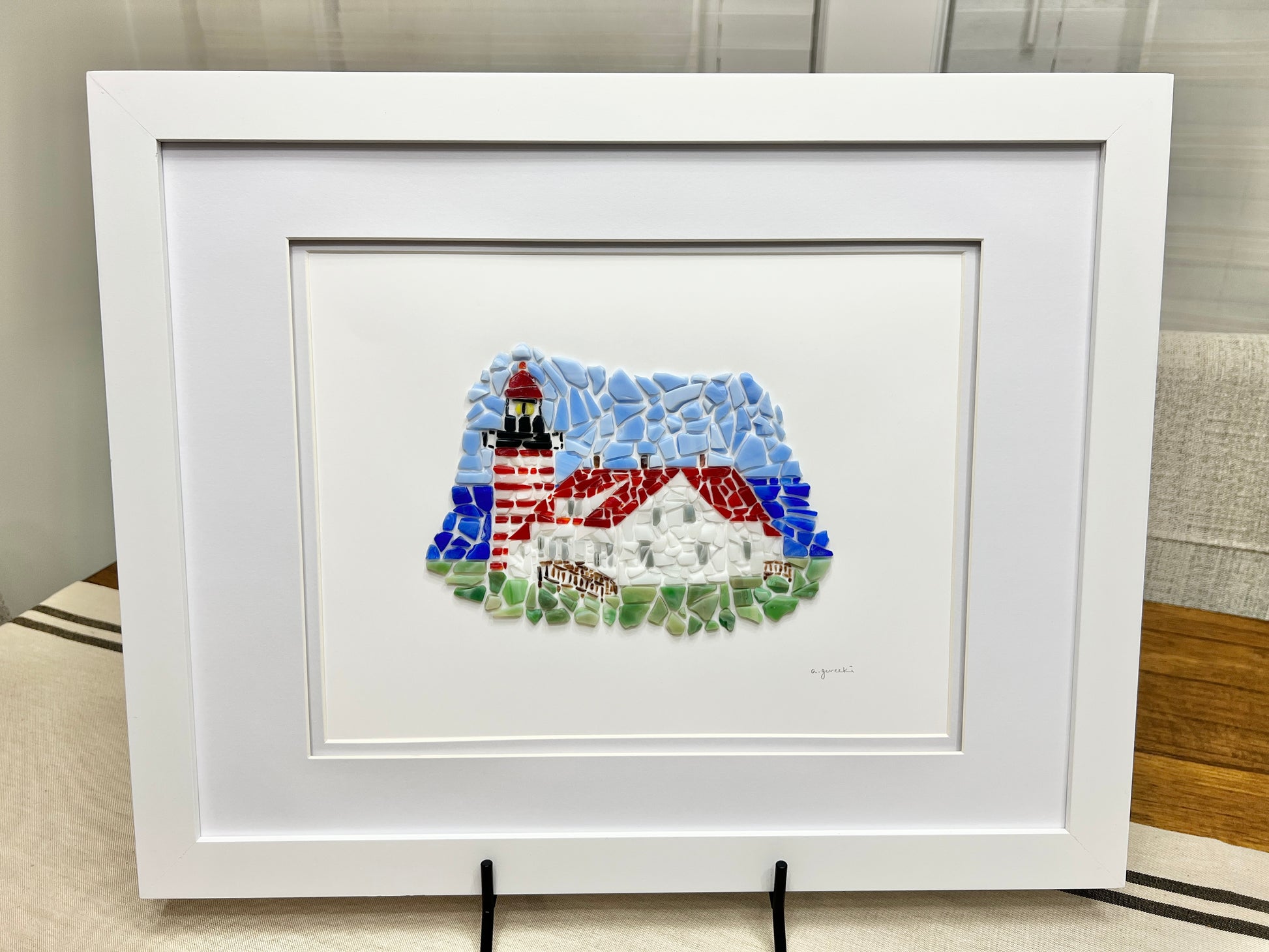 Original Mosaic Glass Art framed in a medium grey frame with a white matte. Comes with hanging wire.